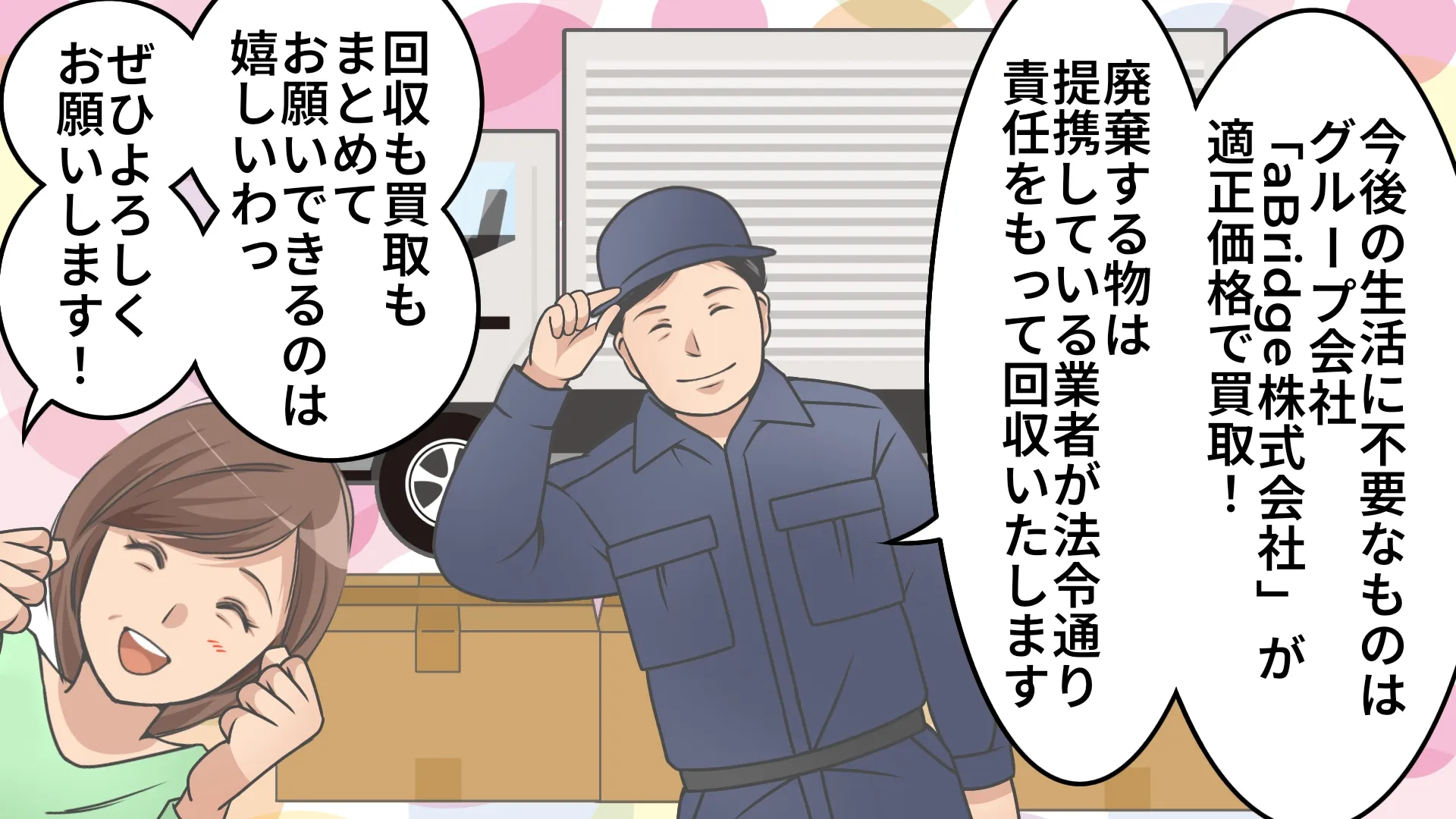 弊社では価値のある不用品を、グループ会社「aBridge株式会社」が運営する買取大吉が、適正価格で買取いたします